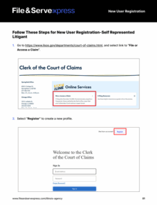 Illinois Secretary of StateCourt of Claims Training Webinar User Guides Self-Represented User Guide New User Registration Attorney User Guide New User Registration Self-Represented Litigant User Guide Additional Resources Clerk of the Court of Claims Court of Claims Publications and Forms Let’s Get Started Log in to Illinois Secretary of State Court of Claims. Log In Questions? We’re happy to help! Contact us below. Contact