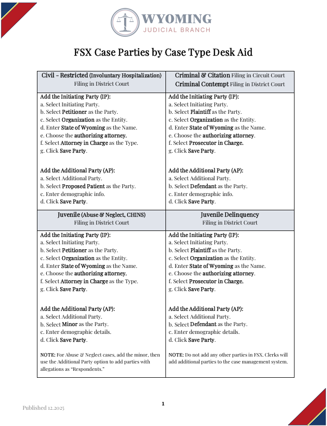Electronic filing and service in the Wyoming Chancery Court is mandatory. When electronically filing and serving, you must do so through the File & ServeXpress (FSX) system.